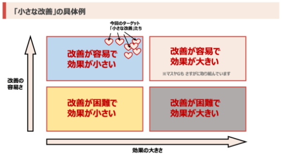 神山さん「取り組めばすぐに改善できそうな小さな改善ほど『後からでも大丈夫』と先送りにしやすい。ですが、塵も積もれば山となります。今すぐにでも取り組めるような小さな改善から目をそらさず、会社としてしっかりと向き合っていく姿勢を示したいと考えました」