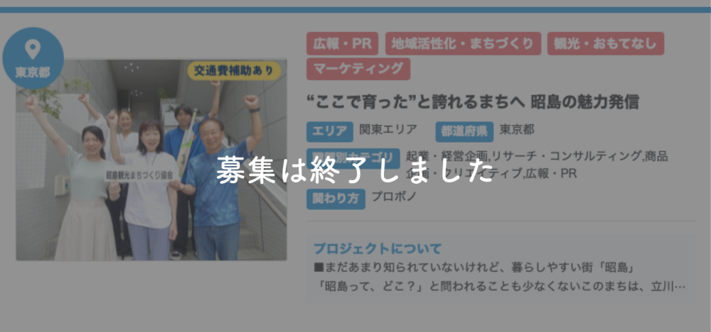 ※本プロジェクト(特集)は、 「(公財)東京観光財団主催観光まちづくりサポート事業」での プロボノ人材活用となります。